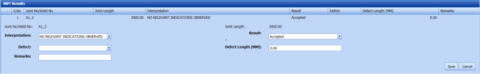 If you have chosen the NDT request type as MT while adding NDT request in the NDT Request – RFI tab, the MT inspection request will be added here.