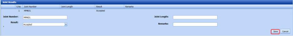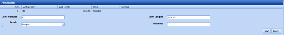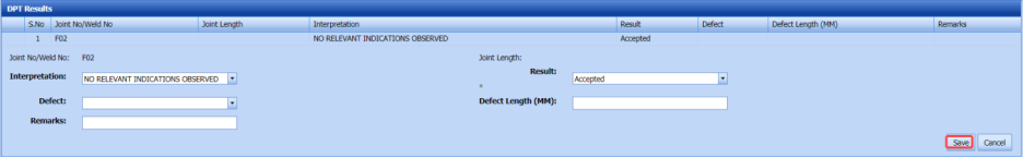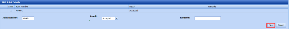 Accepted – If you select Accepted, the respective joint will be moved for further process. Rejected – If you select Rejected, the respective joint will be rejected in the NDT Request – RFI page and moved to Weld visual page with the sub name of suffix 'R1', for example if the joint J1 means it will be added as J1 R1. |