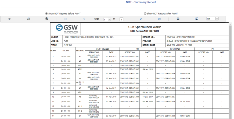 If you want to view the PT summary report, navigate to the PT Summary Report tab in the NDT menu.