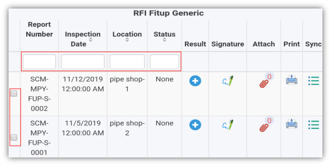 2. If you want to filter one report among the list of reports, you must enter the report number, inspection date, location or status details in the respective boxes given in the RFI Fitup Genericpage.