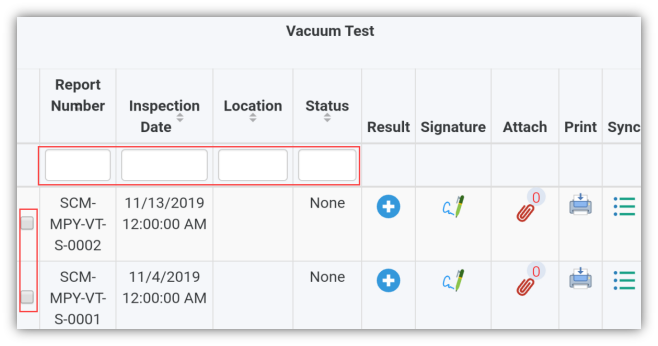 2. If you want to filter one report among the list of reports, you must enter the report number, inspection date, location or status details in the respective boxes given in the Vacuum Testpage.