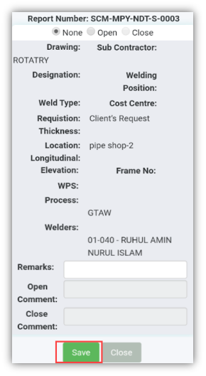 To add your NDT RT, UT, PT, and MT inspection results