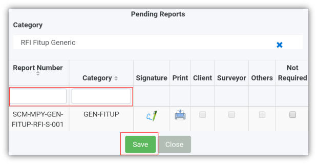 - Report Number - shows the report number of the pending reports.
