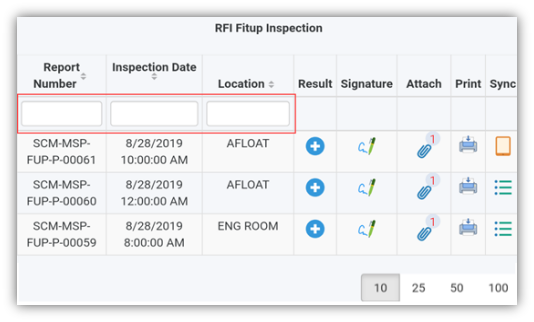 2. If you want to filter one report among the list of reports, you must enter the report number, inspection date or location details in the respective boxes given in the RFI Fitup Inspectionpage.