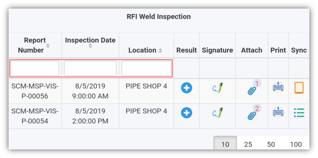 2. If you want to filter one report among the list of reports, you must enter the report number, inspection date or location details in the respective boxes given in the RFI Weld Inspectionpage.