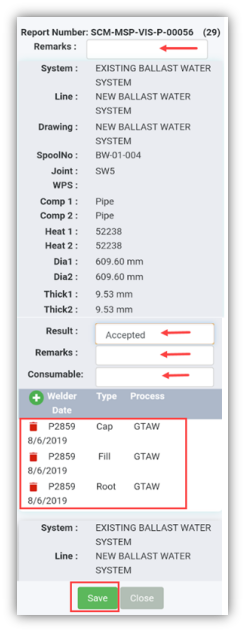 To add your RFI weld inspection result