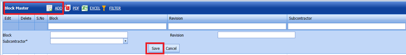 (ADD button) in the Block Master page. See Fig 1.1.1