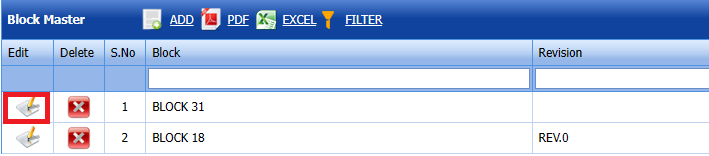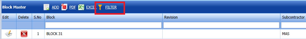 You can export a list of Block added in the Block Master page in both the pdf and excel formats by using