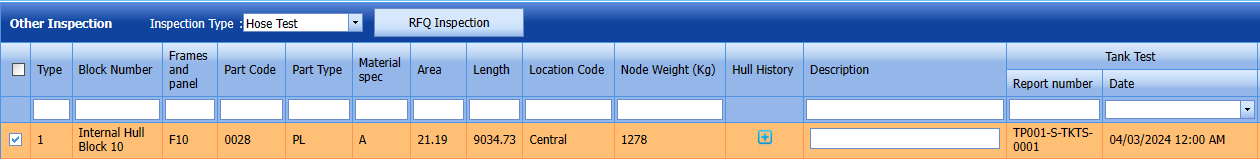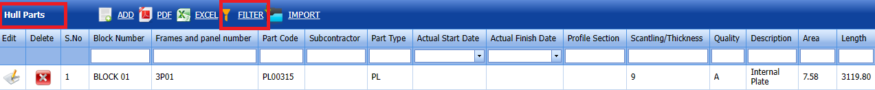 If you want to filter any specific Hull in the Hull Parts of page, you can use