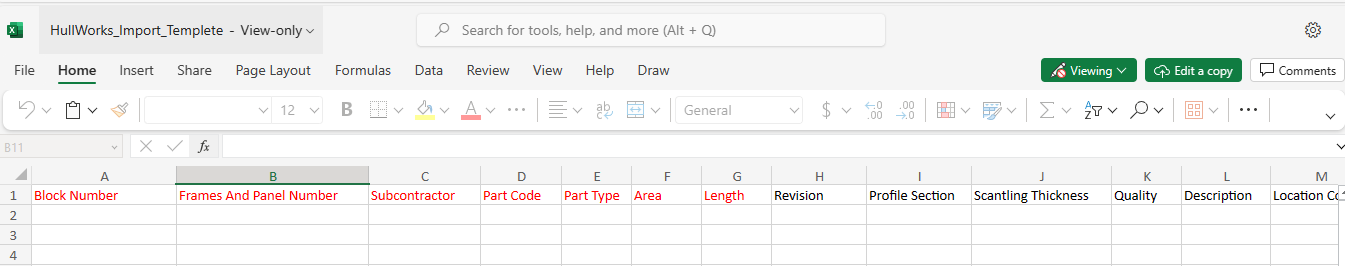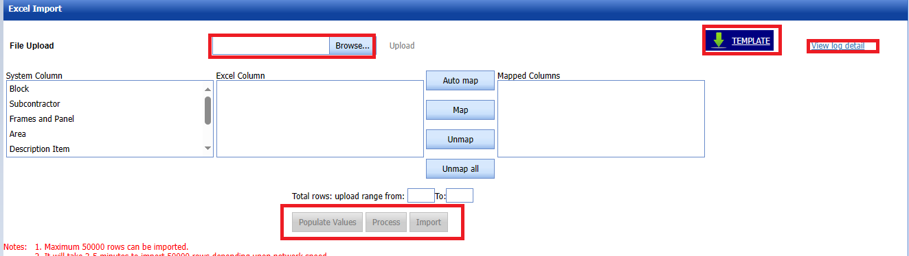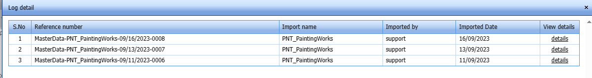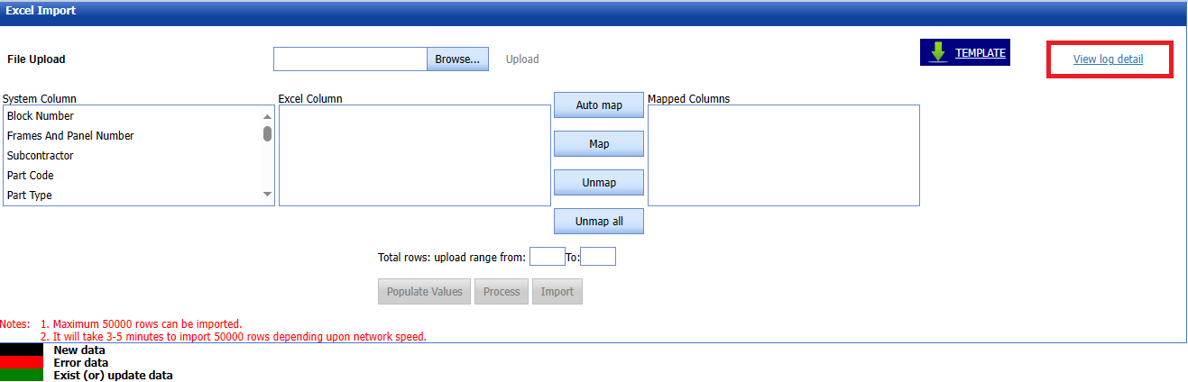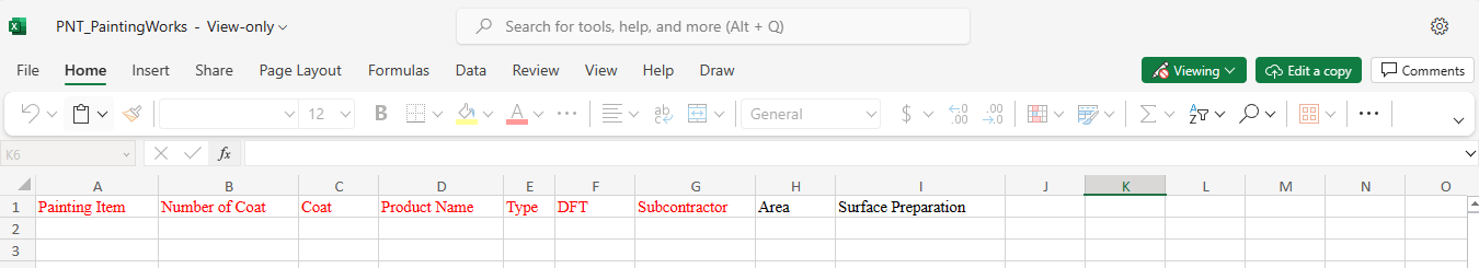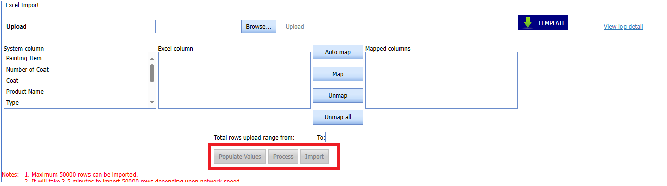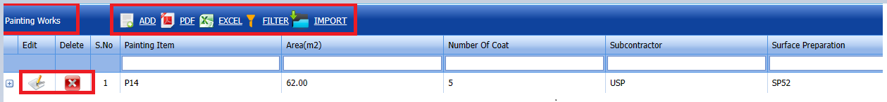(TEMPLATE button). See Fig 5.1.6 An excel worksheet will be downloaded with a predefined template to enter the details of painting.