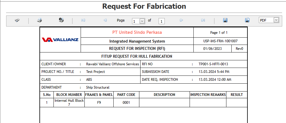 Fig 5.2.8 Export a RFI Coat Inspection Page.