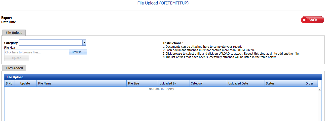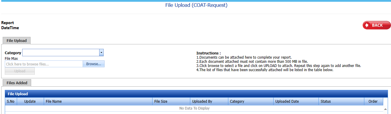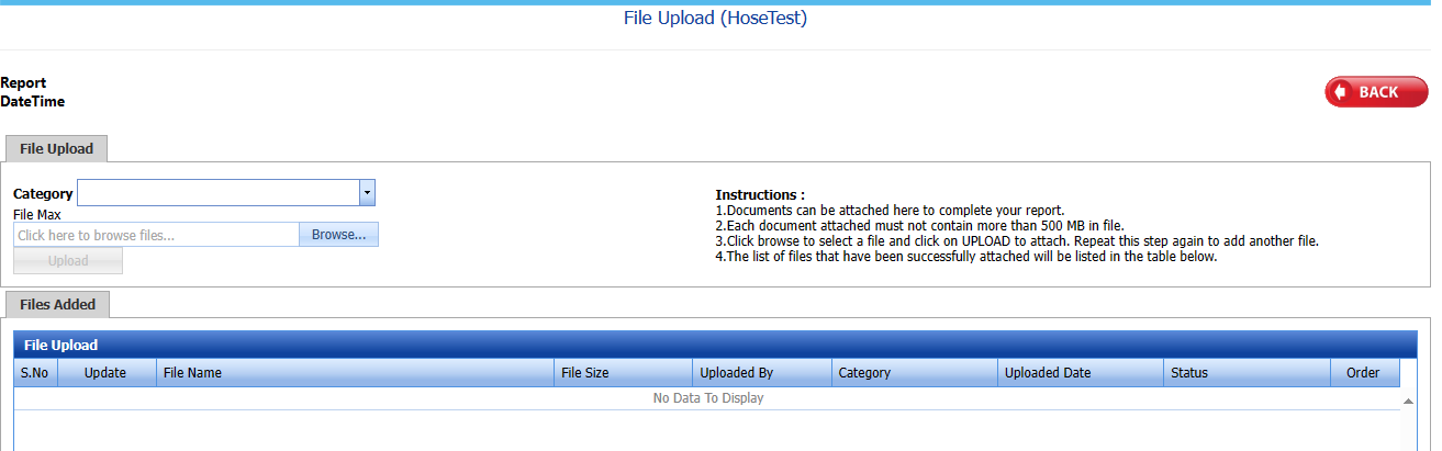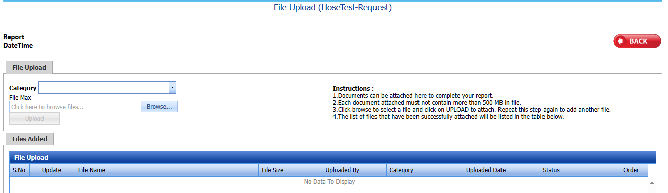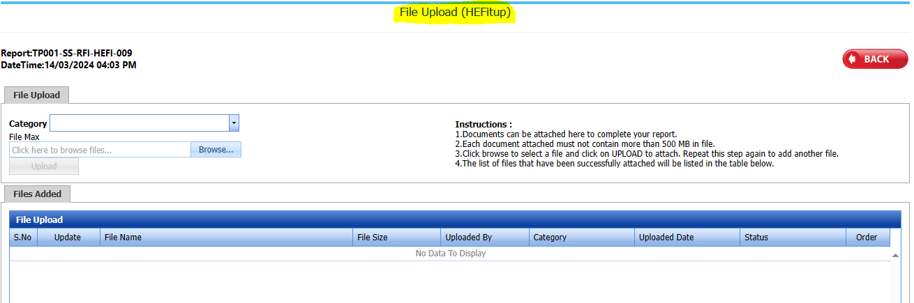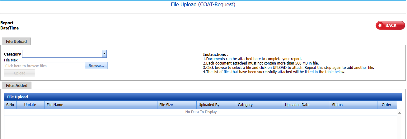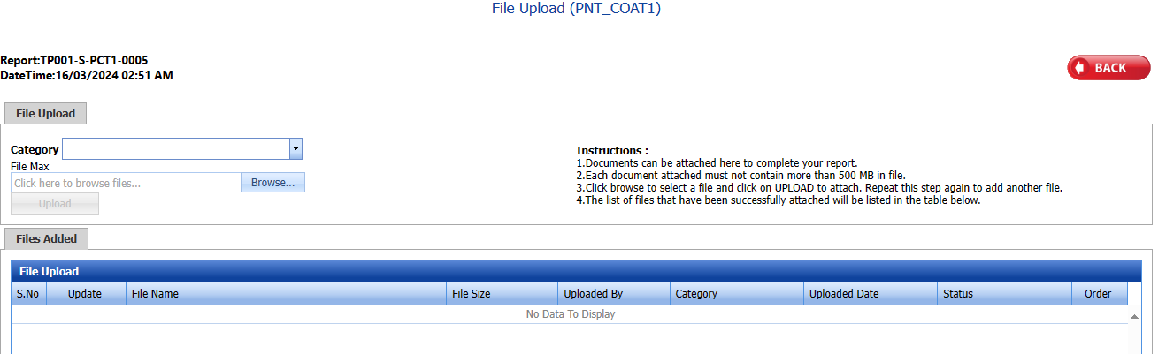 Fig 5.2.5 File upload for RFI Coat inspection page