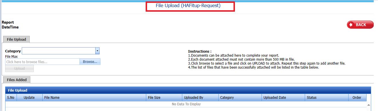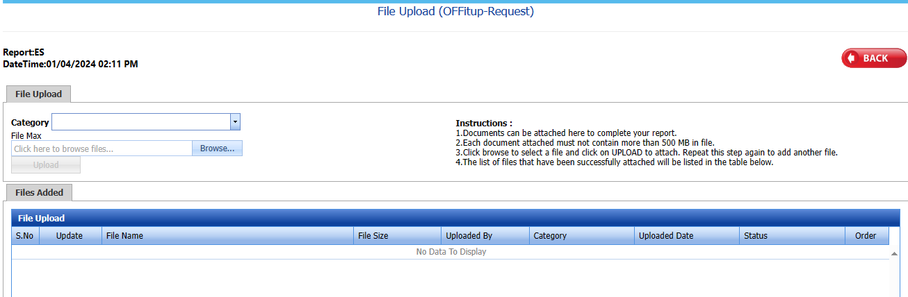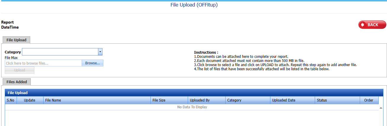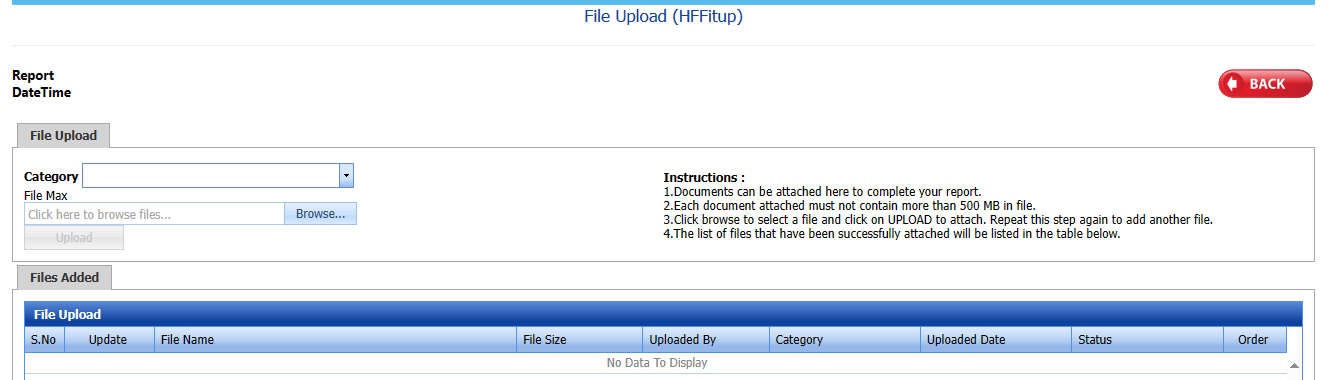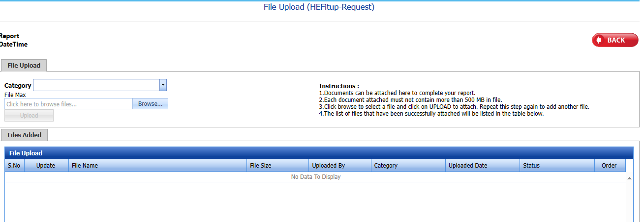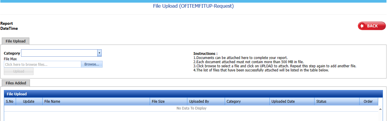 Fig 5.2.5 File upload for RFI Coat inspection page