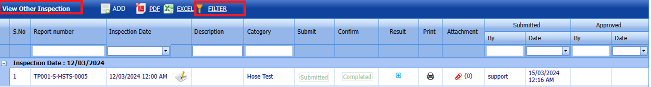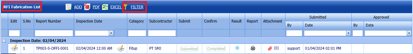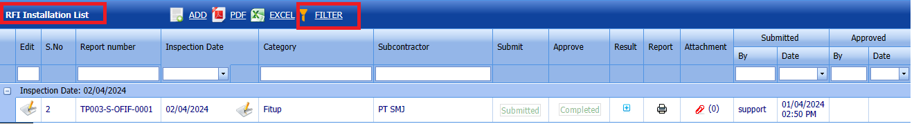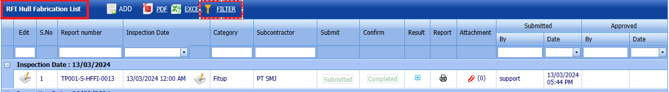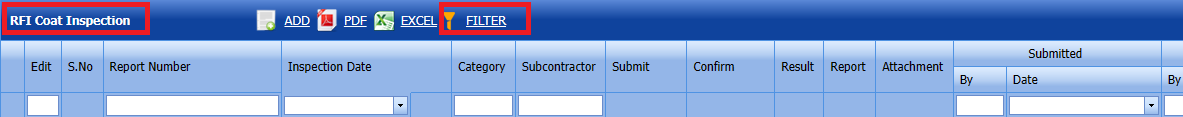 If you want to filter any specific RFI Coat Inspection list in the RFI Coat Inspection page,