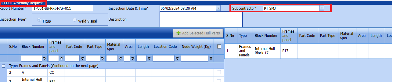 - In the subcontractor box,select the subcontractor from dropdown list.The subcontractor data must match with actual subcontractor who will creating the QIF to avoid disappear.