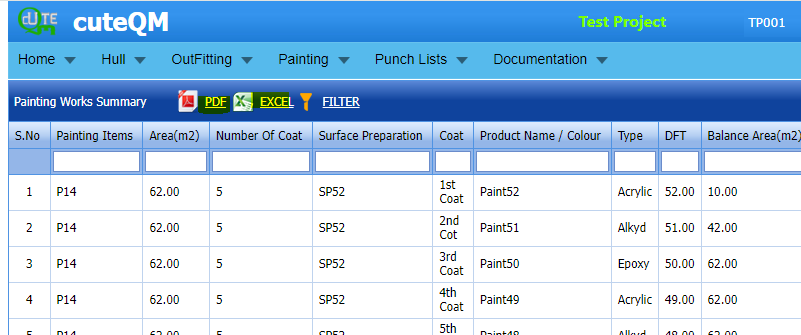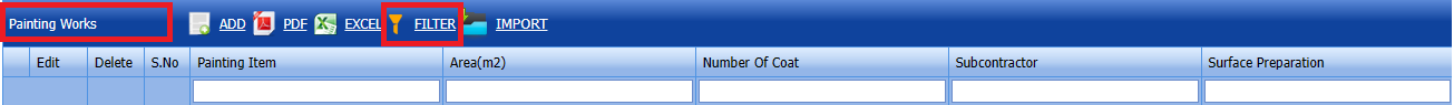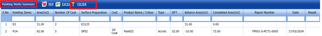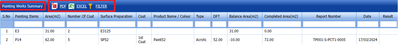 You can export a Painting Works Summary requests added in the painting work summary page in both the pdf and excel formats by using