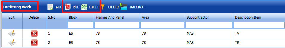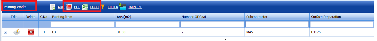 You can export a list of Paintings added in the Painting Works page in both the pdf and excel formats by using