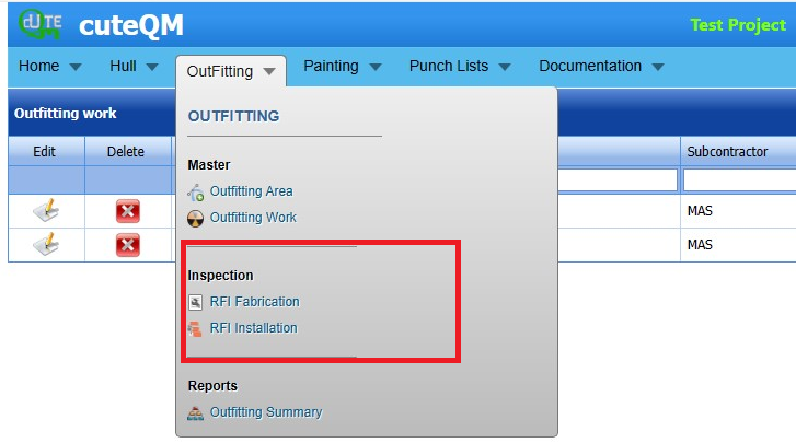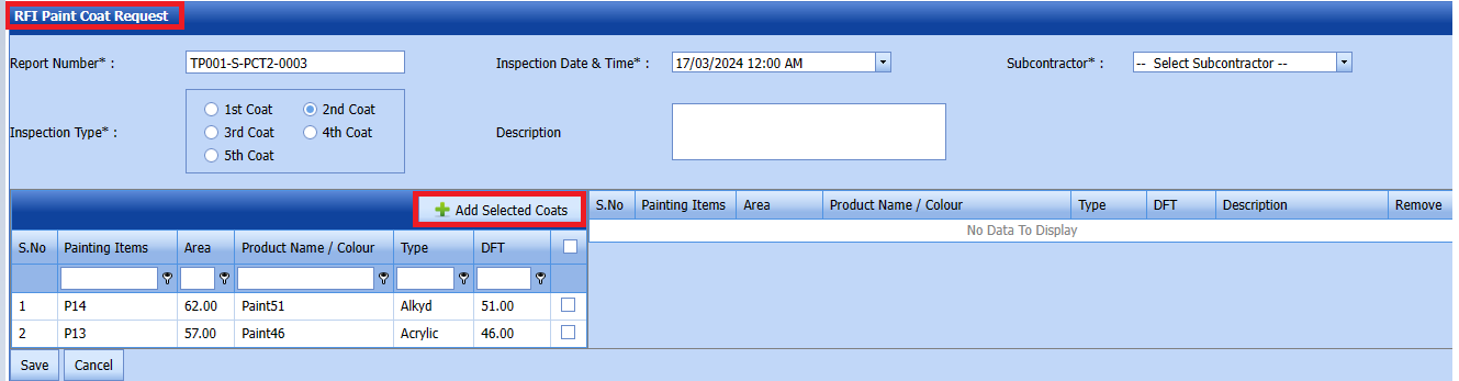 cuteQM_Production role user only can add RFI request.If you want to add a RFI Coat Inspection list, do the following steps,