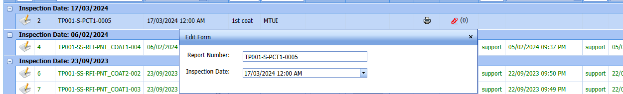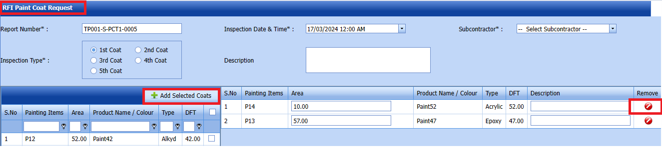 If you want to edit any existing a coat in the RFI Paint Coat inspection request page,