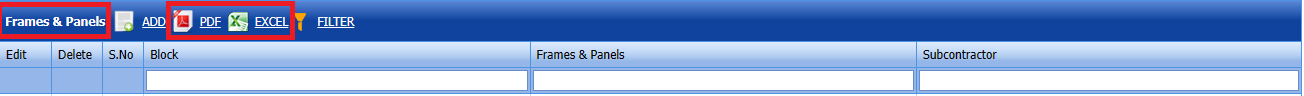 You can export a list of Frames & Panels added in the Frames page in both the pdf and excel formats by using
