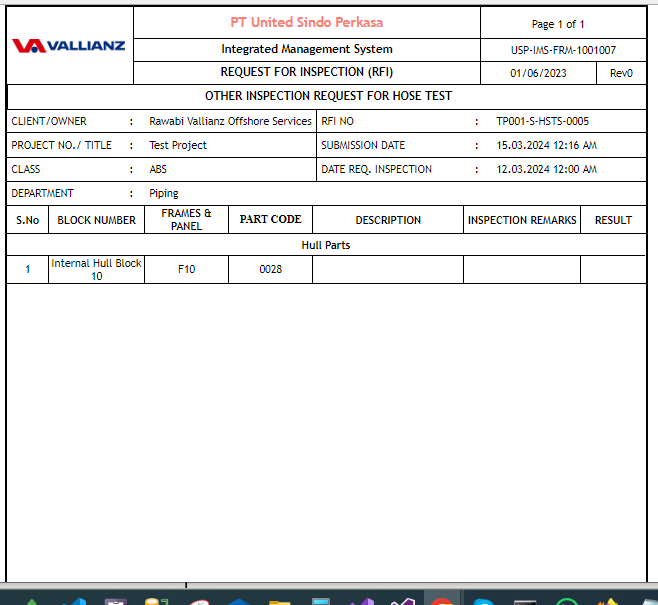 Fig 5.2.7 Attach a file RFI Coat Inspection