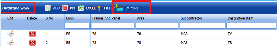 (IMPORT button). See Fig 5.1.6A new window opens for importing the excel worksheet saved on your computer.