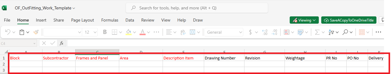 - Enter the required painting details in the respective columns of the excel worksheet.
