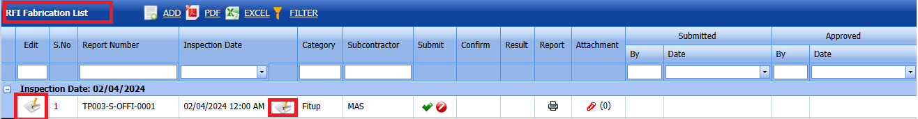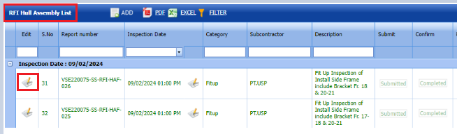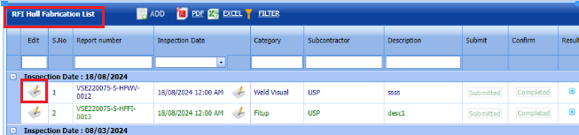 (Edit icon) of the respective RFI Coat Inspection Request page opens. See Fig 5.2.2
