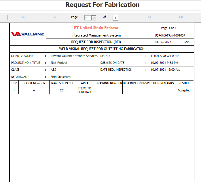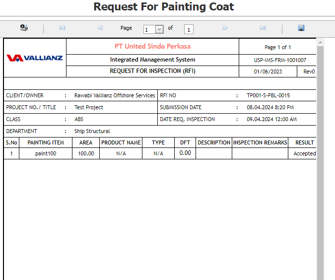 Fig 5.2.6 View a RFI Coat Inspection Page