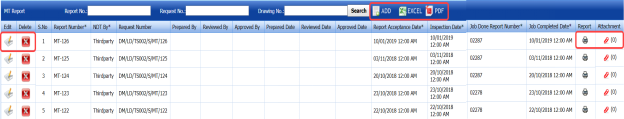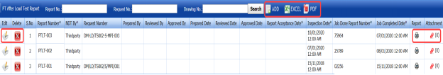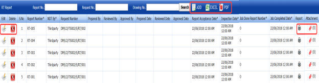 - If you want to filter any RT report based on the drawing number, enter the corresponding drawing number in the Drawing No box in the RT Report page, and then Click Search.
