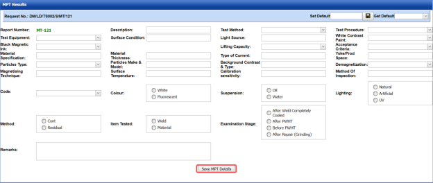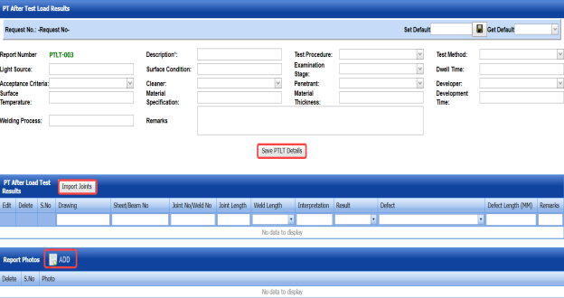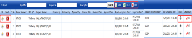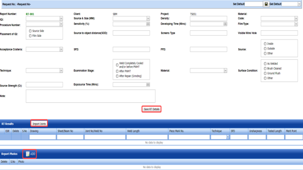The RT report is successfully added. Once you have added the RT report, you must add RT results for the respective added RT report.