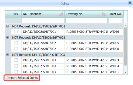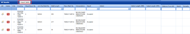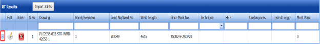 The RT results are successfully updated. Once you have updated the RT results, you must import joints added for the RT inspection.
