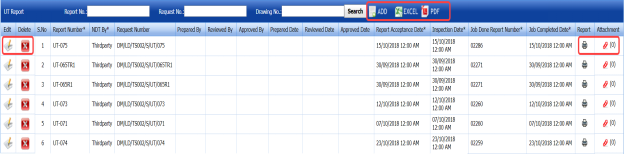 - Click the respective added UT report in the UT Report page. See Fig 6.2.