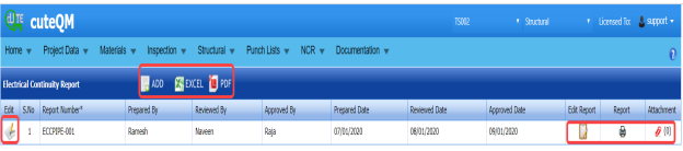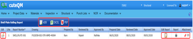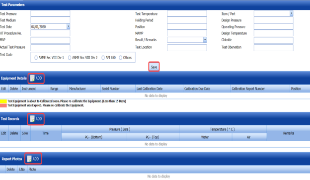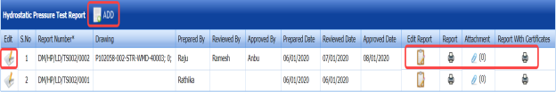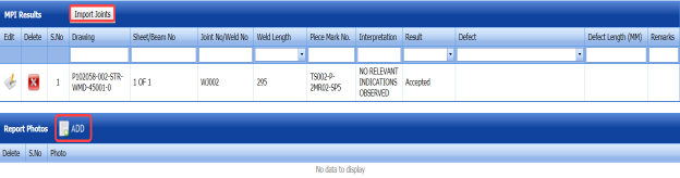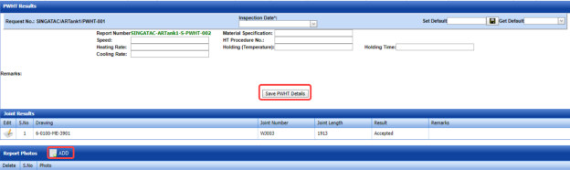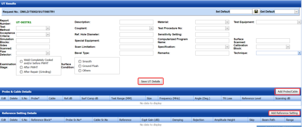 The UT report is successfully added. Once you have added the UT report, you must add UT results for the respective added UT report.