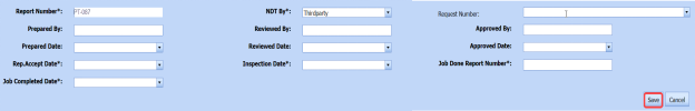 In the Job Done Report Number box, enter the report number of completed inspection job.