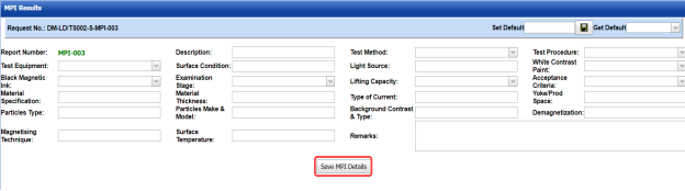 - Click the Weld Rejection Rate (MPI) tab.
