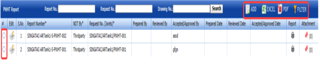 If you want to edit any existing weld traceability record in the Weld Traceability Record page, do the following,