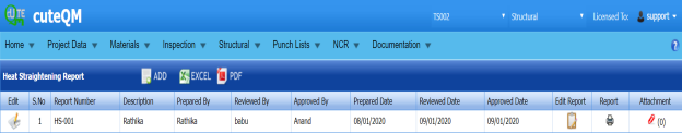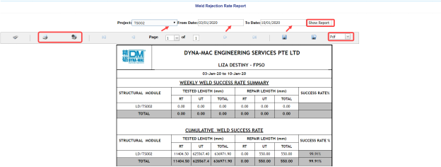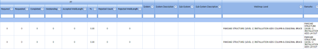 In Structural project, Weld Rejection Rate is the difference between the tested length and repair length of the welded material, which are calculated using RT and UT inspection. The Weld Rejection Rate is used to calculate the weld success rate.