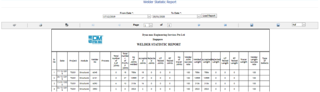 Figure 9.33: Welder Statistic Report page