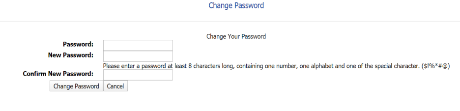 Note: Before changing your password read the conditions specified in the Change Password page.